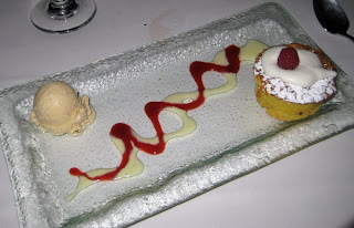 These were two very delicious desserts that went well together. I really loved the chocolate one which was warm, velvety, almost gooey on the inside. The other was a little more firm, but still delicious with a sort citrus/vanilla flavor to it. I ate almost all of it. =)