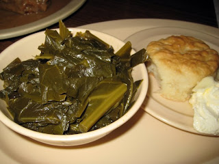 The greens were seasoned to my liking. Tangy, salty, and slightly bitter. I liked them. The biscuit was stale and rubbery. Blasphemy!