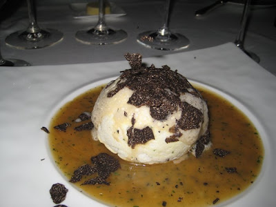 Its been so long, I forgot what it was composed of, but I do remember that it was fucking awesome.Truffle eggMelting organic egg, shaved black truffles, truffle sauce$55 Supplement when substituted on tasting menu