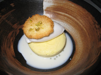 Our cheese selection. I fucking love some good ass, smelly ass cheese. I'm a refined young lady.Passion Fruit Parfait, Coconut Sorbet, Pistachios and Lemongrass.