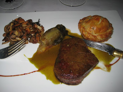 I loved this. It was the perfect lobster thermidor. My mouth waters just thinking about it.True Japanese Wagyu Beef "Kobe" Filet Mignon 5 ouncesPotato Leek Torte, Wild Mushrooms, Braised Boston Lettuce, Herb Jus$90 supplement when substituted on tasting menu