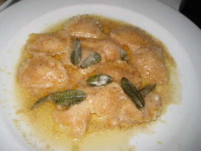Sweet corn ravioli with fontina cheese and truffle oil.